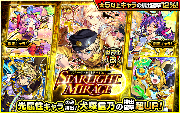 ※ガチャ「STARLIGHT MIRAGE」の排出されないキャラクターや詳細および提供割合は、ガチャ画面よりご確認ください。
