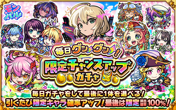 ガチャを引くたびに限定キャラクターの排出確率がアップ!