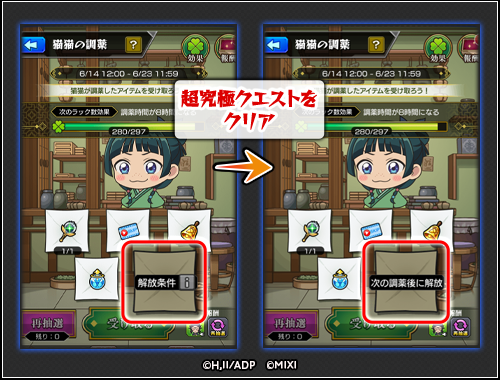 さらに、調薬したアイテムを再抽選できる権利などの報酬が獲得できるので、どんどん「猫猫」に調薬してもらおう!